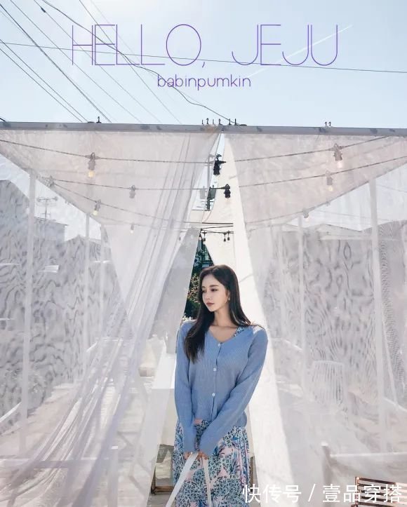 女神孙允珠高清时尚搭配:雅典钻蓝热带花簇波
